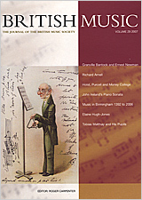 The Lennox Berkeley Centenary, by Peter Dickinson; Roger Quilter: Some Afterthoughts, by Valerie Langfield; Bantock Meets the Press: Celebrating the New Music before the First World War, by Lewis Foreman; The EPSS/BMS Golden Jubilee Song Competition, 2002; Edouard Michael, by Hubert Culot; Holst Among Friends: Afterthoughts, by Alan Gibbs; A Reappraisal of W. Vincent Wallace (1812-1865), with new documentary information on his death, by David Grant; Alexander Campbell Mackenzie: Catalogue of Works and Source List, by Jürgen Schaarwächter; Alice Mary Smith: an Update, by Ian Graham-Jones; "Enchanted Summer" (Bax and Balfour Gardiner), by Colin Scott-Sutherland. |