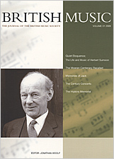The British Music Society is pleased to announce publication of this absorbing autobiography, which charts a still very active career with characteristic wit and insight. Copiously illustrated, this 112-page volume also includes a selection of earlier articles by the author and a definitive list of compositions complete up to March 2003, together with a full bibliography and discography.